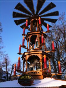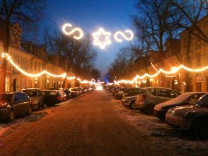 In der Vorweihnachtszeit findet jedes Jahr im Holländischen Viertel der traditionelle Weihnachtsmarkt statt – eine bunte Mischung aus Brauchtum und neumodischen Schnick Schnack. Kleine Verkaufsbuden mit Handwerkskunst und Spezialitäten aus der Region reihen sich an klassische „Fressbuden“ und Glühweinstände, hier und da dreht ein Schaukelpferd einsam auf einem Kinderkarussell seine Runden und überdimensionale Nussknacker und Weihnachtspyramiden zäumen den Weg. Die Atmosphäre des Weihnachtsmarktes ist durch die schmalen Gassen sehr gemütlich. Ergriffen von der musikalischen Untermalung spazierten wir von einem Glühwein zum nächsten und genossen heiter und beschwingt den kalten Wintertag.